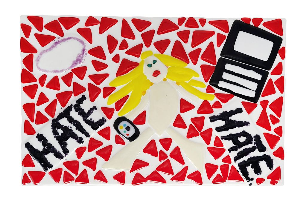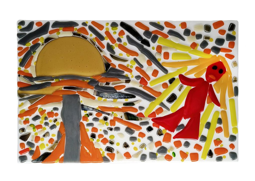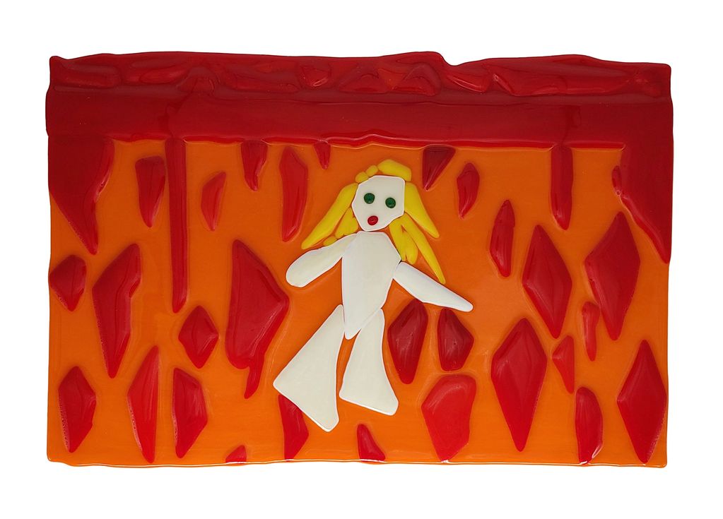 I have completed a series of fused glass pieces that explores the topic of fear. Within each piece there is a female figure that flows through the series confronting situations that cause fear.